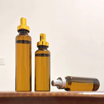 Amber temizle boş Oral sıvı cam flakon kozmetik ambalaj sekizgen kenar alüminyum kapak cilt bakımı için dondurularak kuru toz